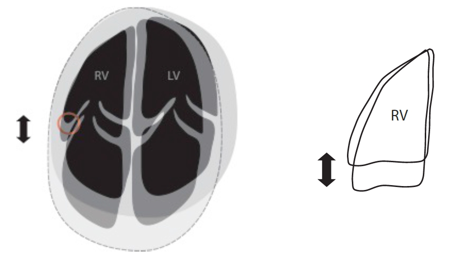 We will be adding TAPSE to the features of RV strain that we teach at EDE 2. In our experience so far, it is a useful adjunct that can usually be “eyeballed” to help decide if there is evidence of strain. See below for one of Andrea’s figures from EDE 3. It illustrates where to look for TAPSE and observe for the “Base Jump”.